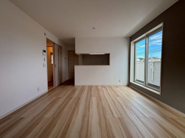 正形で形の良いリビングは、13.6畳♪ 使いやすく家族が集まる空間としては最適な空間です。 南東側に二つの開口部で明るい陽ざしが差し込みます♪