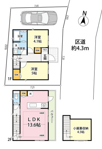 前面4.3m公道は、車通りはほとんど御座いません。お子様の飛び出しなどにも安心できる立地かと思います。