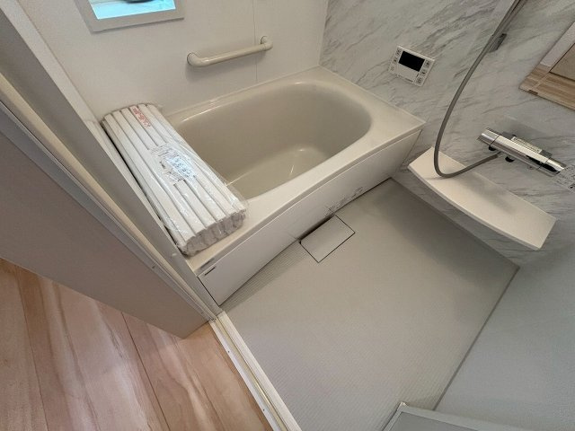 足を延ばして入れる広々タイプで、毎日の疲れを癒します。浴室換気暖房設備も搭載です♪