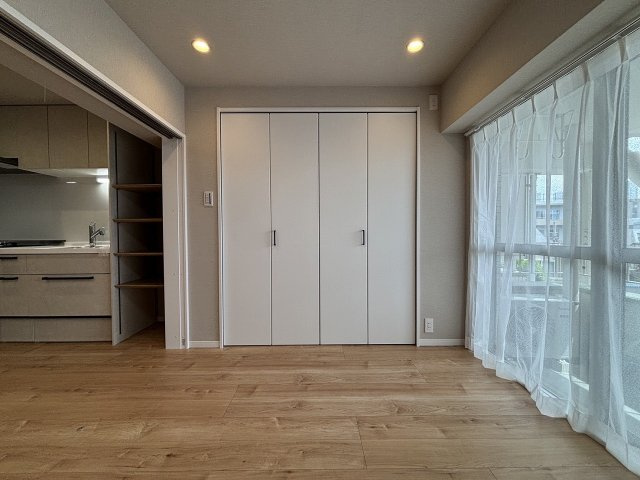 リビングには、これだけ大きなクローゼットを設置してみました♪奥行きもしっかりとあり、洋服収納大容量!!