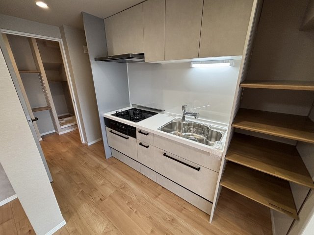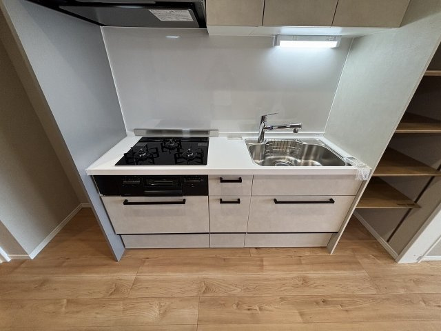 シンプルイズベスト!!白を基調としたI型システムキッチンは、吊戸棚や右横可動式戸棚などの設置で機能性と収納力をupしました♪
