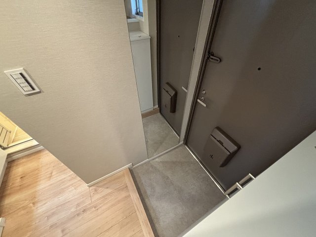 玄関脇には大きな姿見を設置しました。お出かけ前の身支度チェックには欠かせないアイテム♪